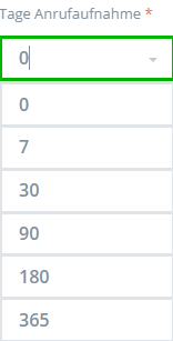 Mit Ausnahme von Gesprächsaufzeichnung und Verschlüsselten Gesprächen erlauben alle Felder maximal 4 Ziffern (Maximum = 9999).