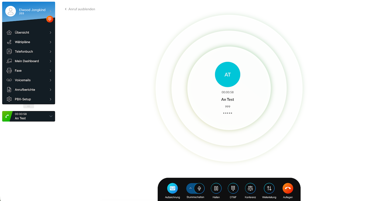Rufen Sie wie gewohnt eine interne oder externe Nummer über UC-Client an. Sobald die andere Partei abgenommen hat, ist das Gespräch aktiv.