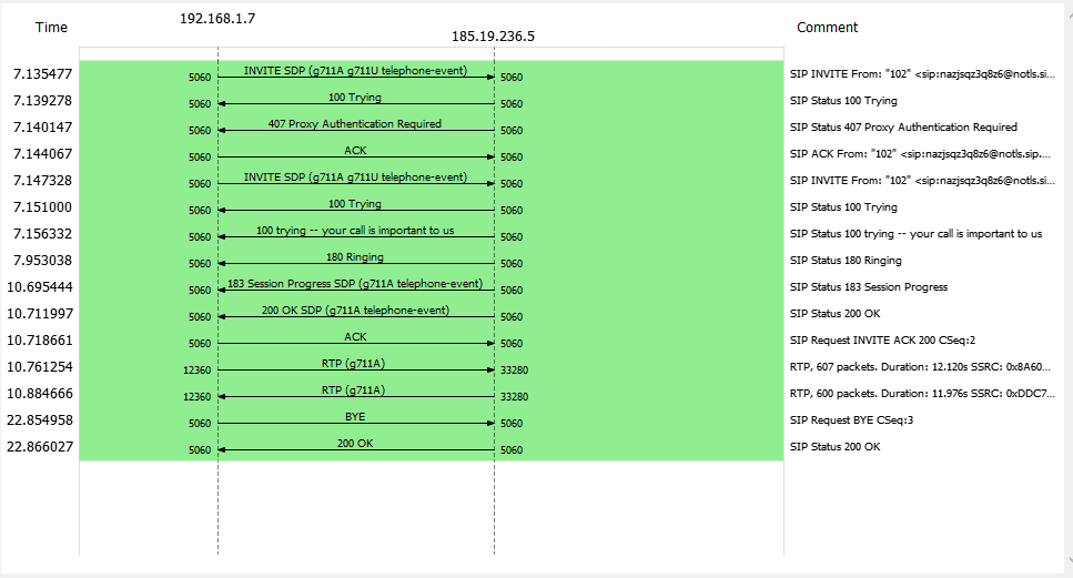 Line 10 and 11: Answer on the SIP INVITE and call is active