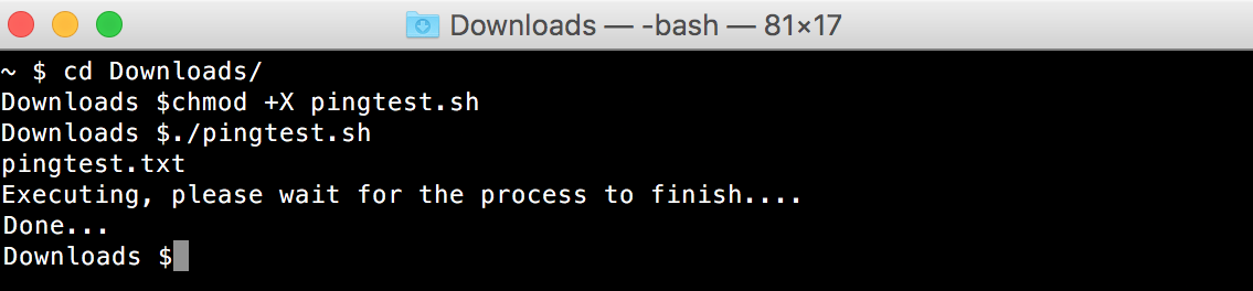 chmod +x pingtest.shRun the script using the following command: